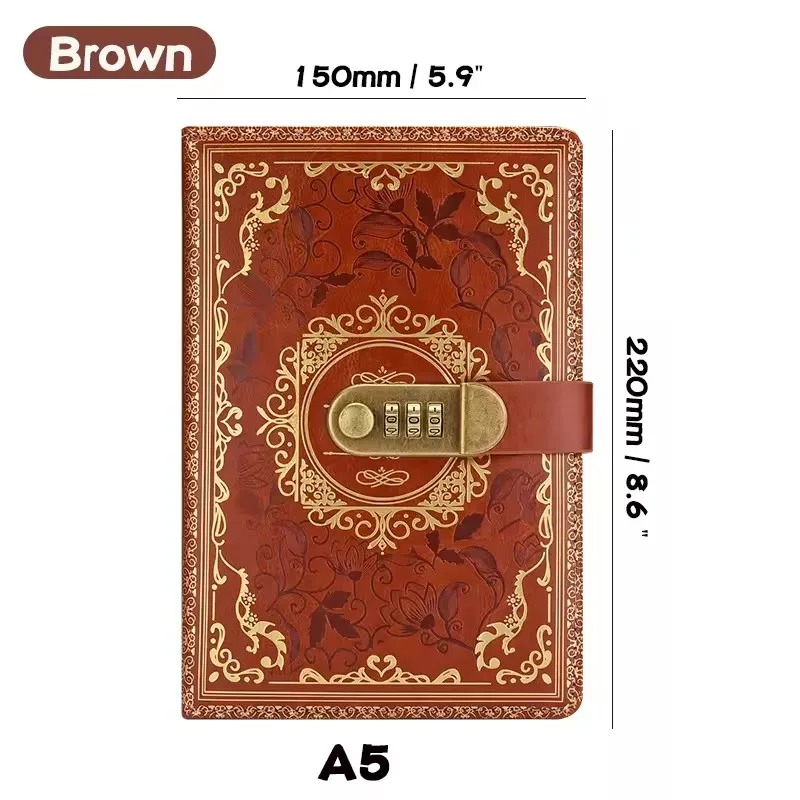 حافظ على خصوصيتك وأفكارك بأناقة مع SecureNotes، دفتر ملاحظات A5 الفاخر المزود بقفل رقمي مدمج. مصنوع من جلد البولي يوريثان الفاخر، ليمنحك تجربة كتابة راقية وآمنة، مثالي للرجال والنساء لتدوين المذكرات، الملاحظات الشخصية، أو أي محتوى سري بأمان تام.